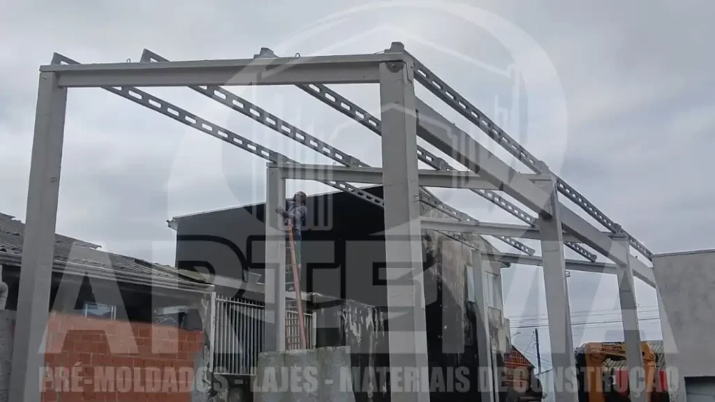 Pré-moldado Vila dos ComerciáriosPré-moldado medindo 5 metros de largura, 15 metros de comprimento e 4 metros de altura. Modelo meia água.