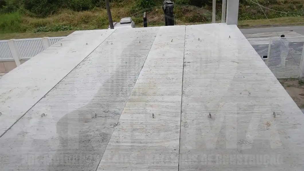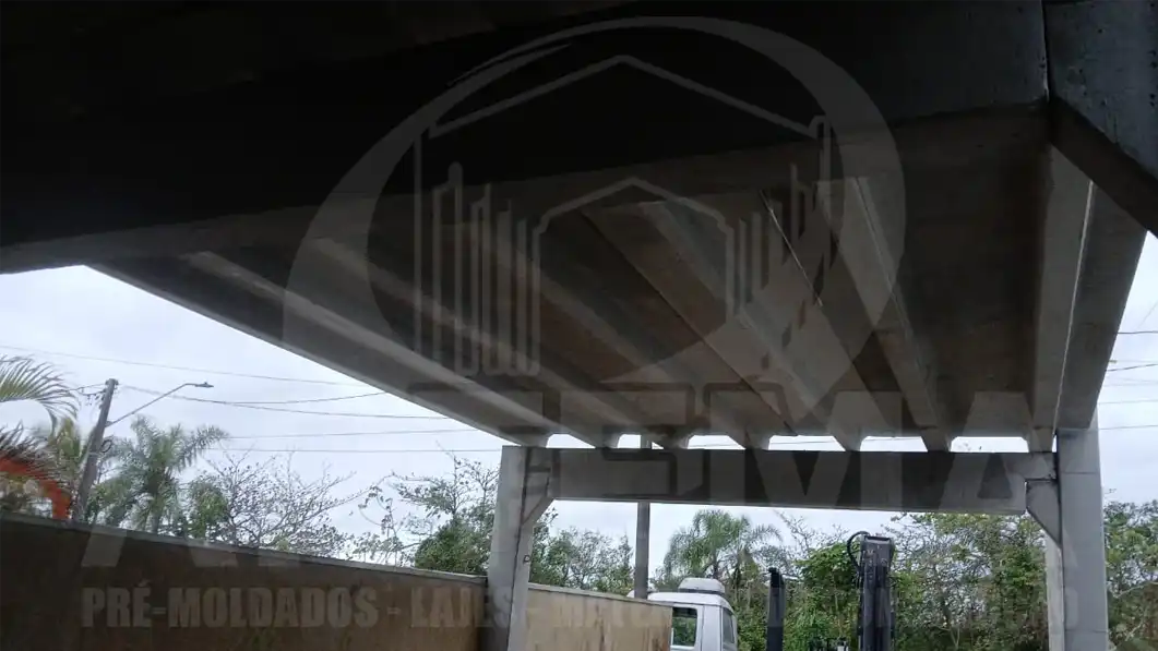 Mezanino pré-moldado medindo 4,50 metros de frente por 6 metros de fundos e 3,25 metros de altura.