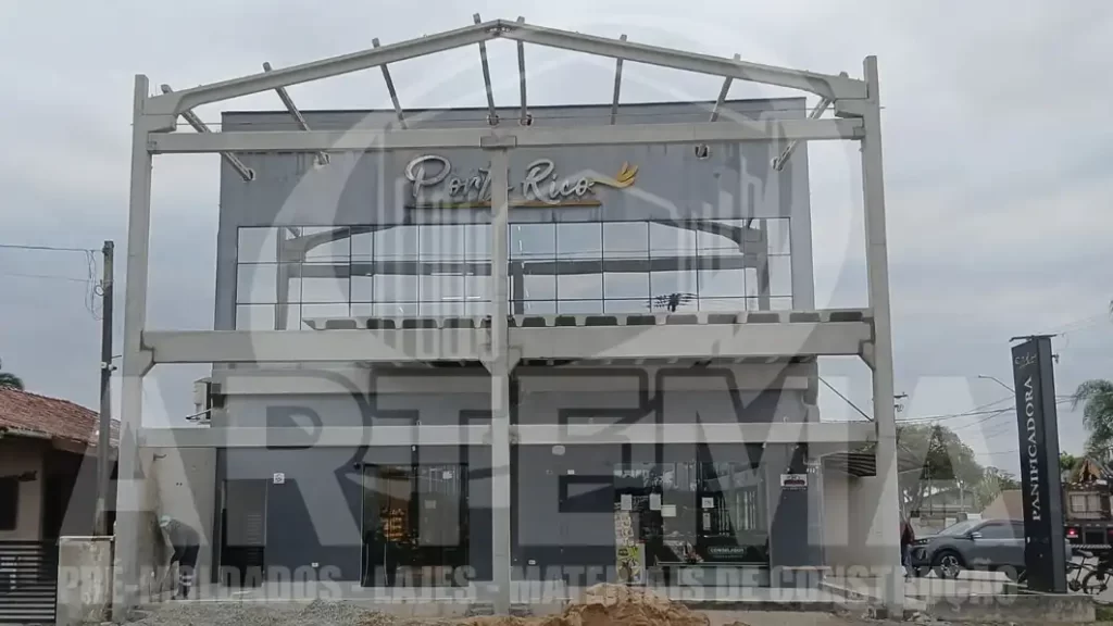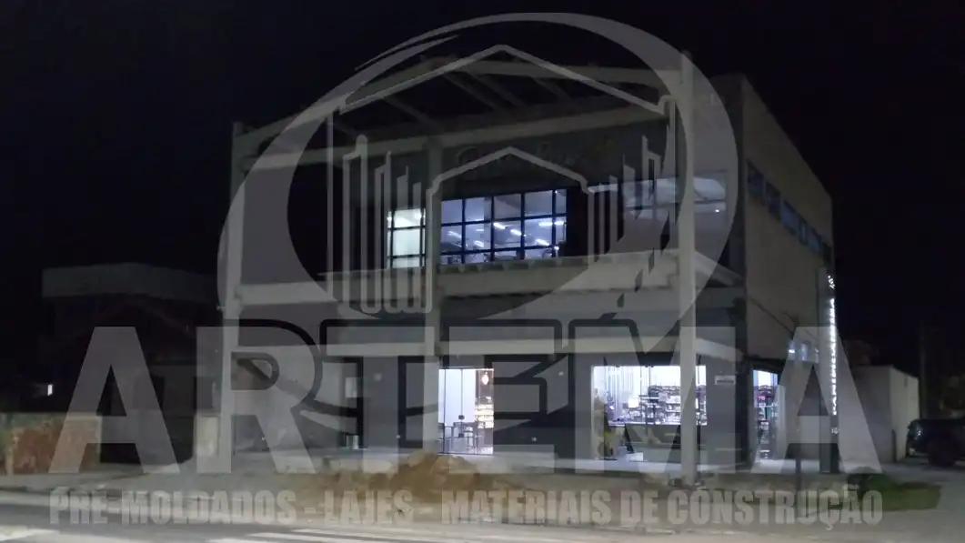Expansão de pré-moldado já existente com medidas 12 metros de frente por 5 metros de comprimento, possui laje mezanino.